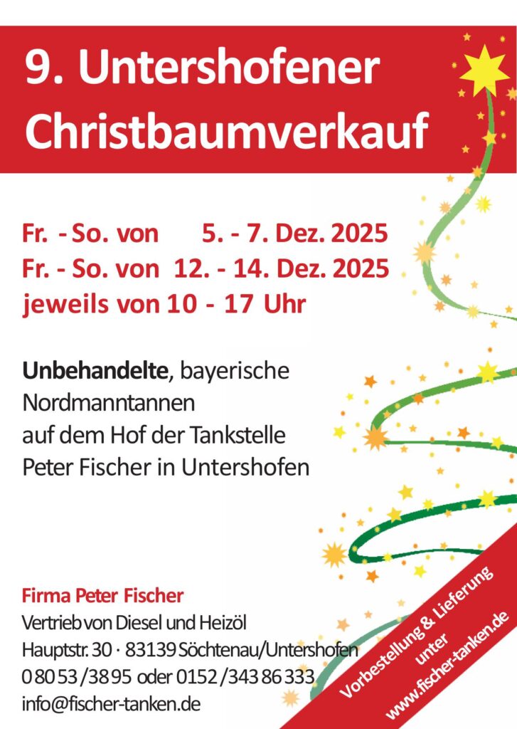 Der Christbaumverkauf 2025 wird vom 5. – 7. und vom 12. – 14. Dezember sein.